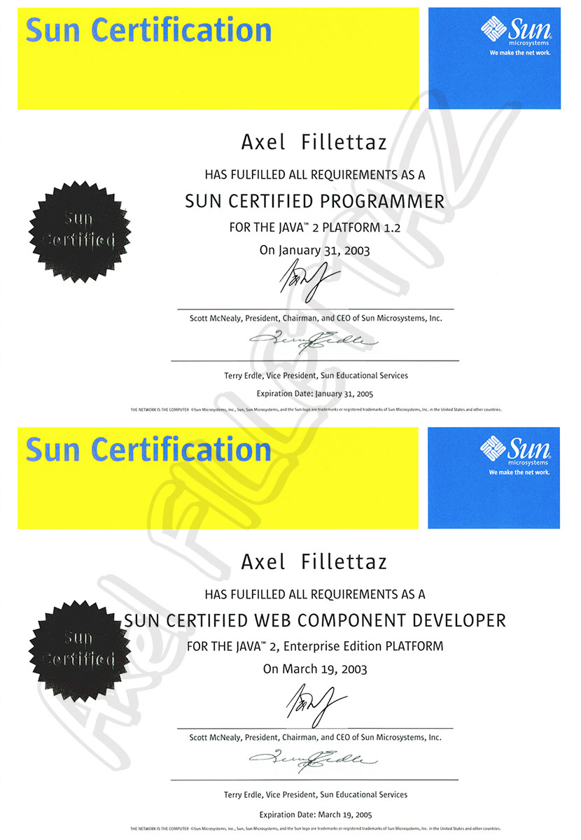 Sun certified Web Component Developer for J2EE Platform.