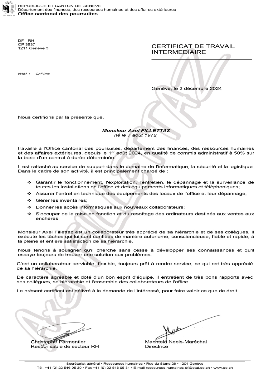 Rattaché au service de support dans le domaine de l'informatique, la sécurité et la logistique.
